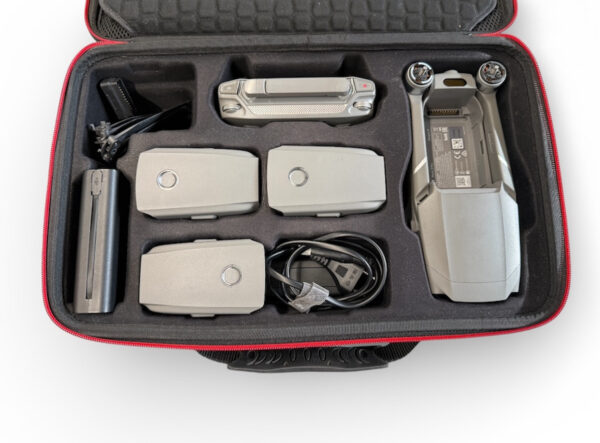 Drone DJI Mavic 2 Pro Fly More Combo in ottime condizioni completo di radiocomando, tre batterie (55, 73 e 74 cicli), caricabatterie multiplo, valigetta di trasporto, eliche di ricambio, cavi di collegamento e ricarica.